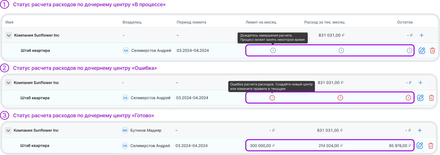 корневого центра затратзаполнено по умолчанию и идентично названиюАккаунта компании(вашей организации), указанному при регистрации.- владелец,
