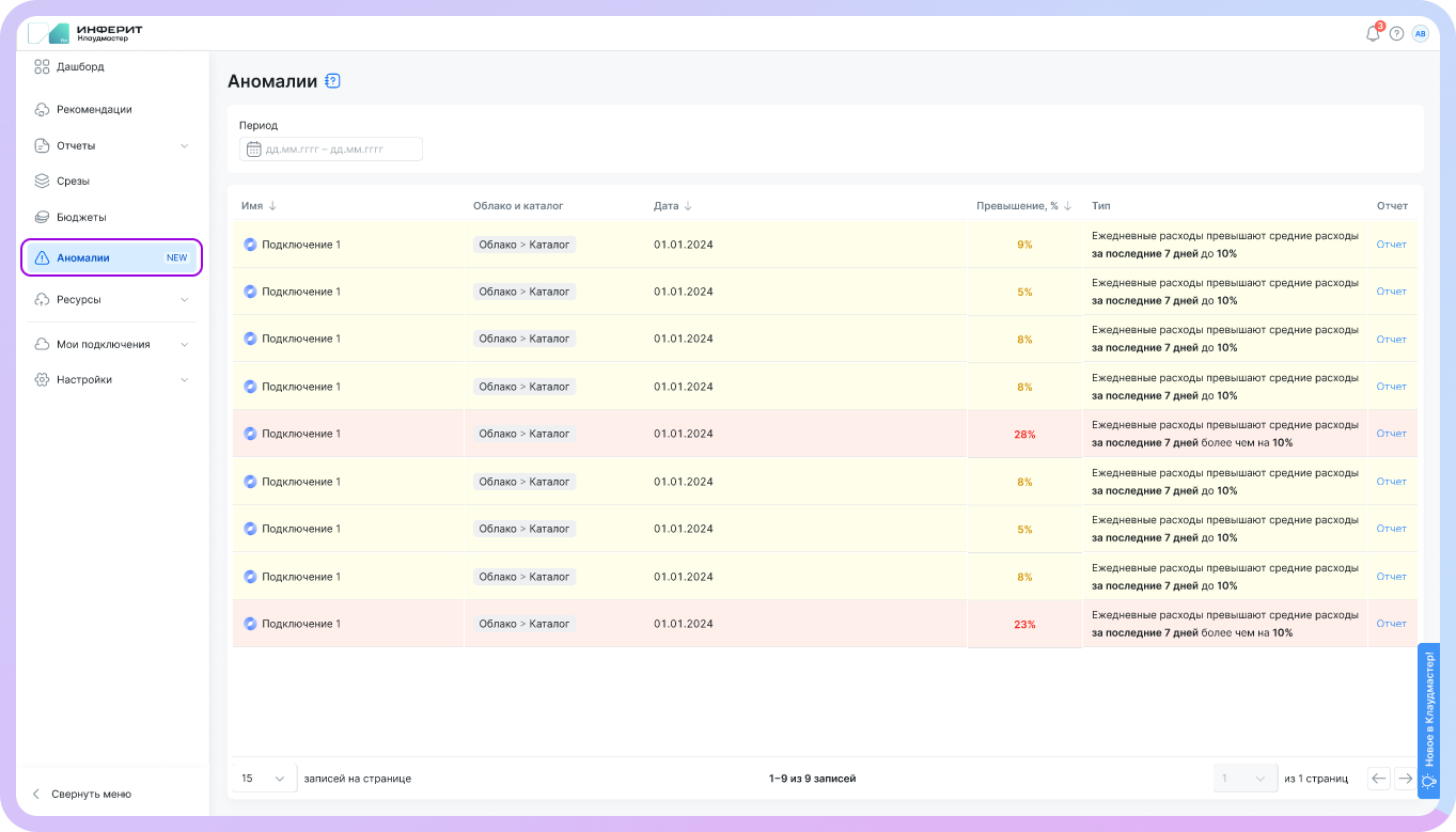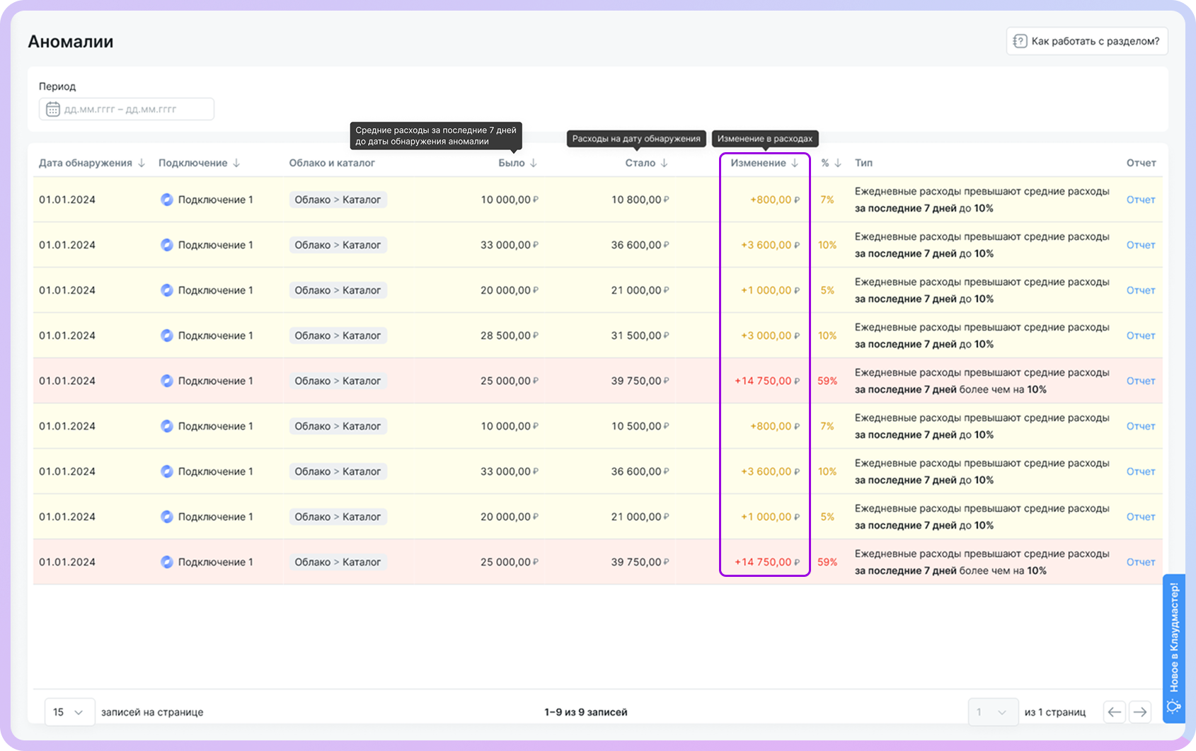 Аномалии: добавили значение аномалии (изменения в расходах) в руб. (ранее было только в %).