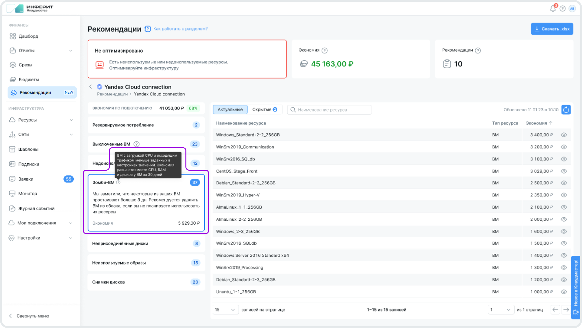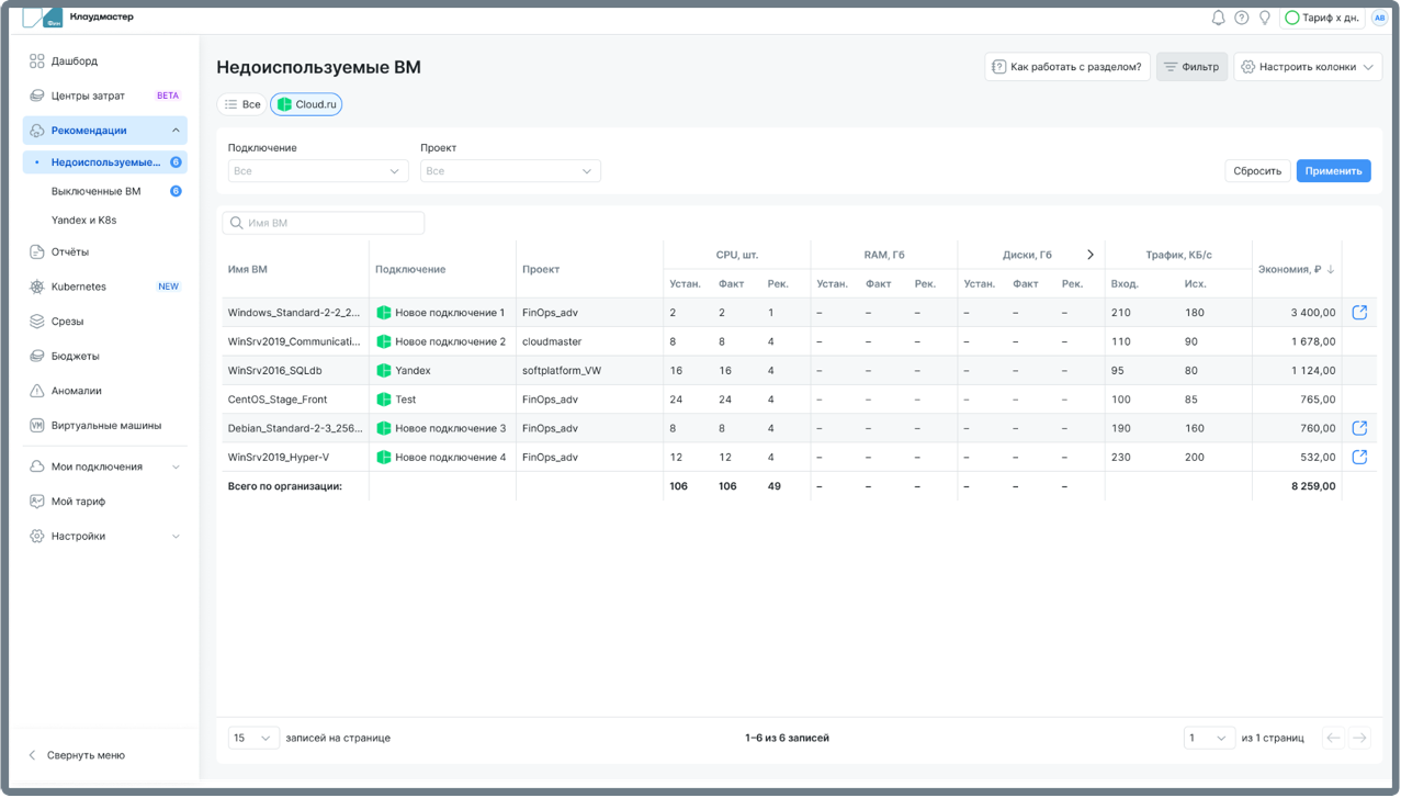 Cloud.ru Advanced: рекомендации для выключенных и недоиспользуемых ВМ