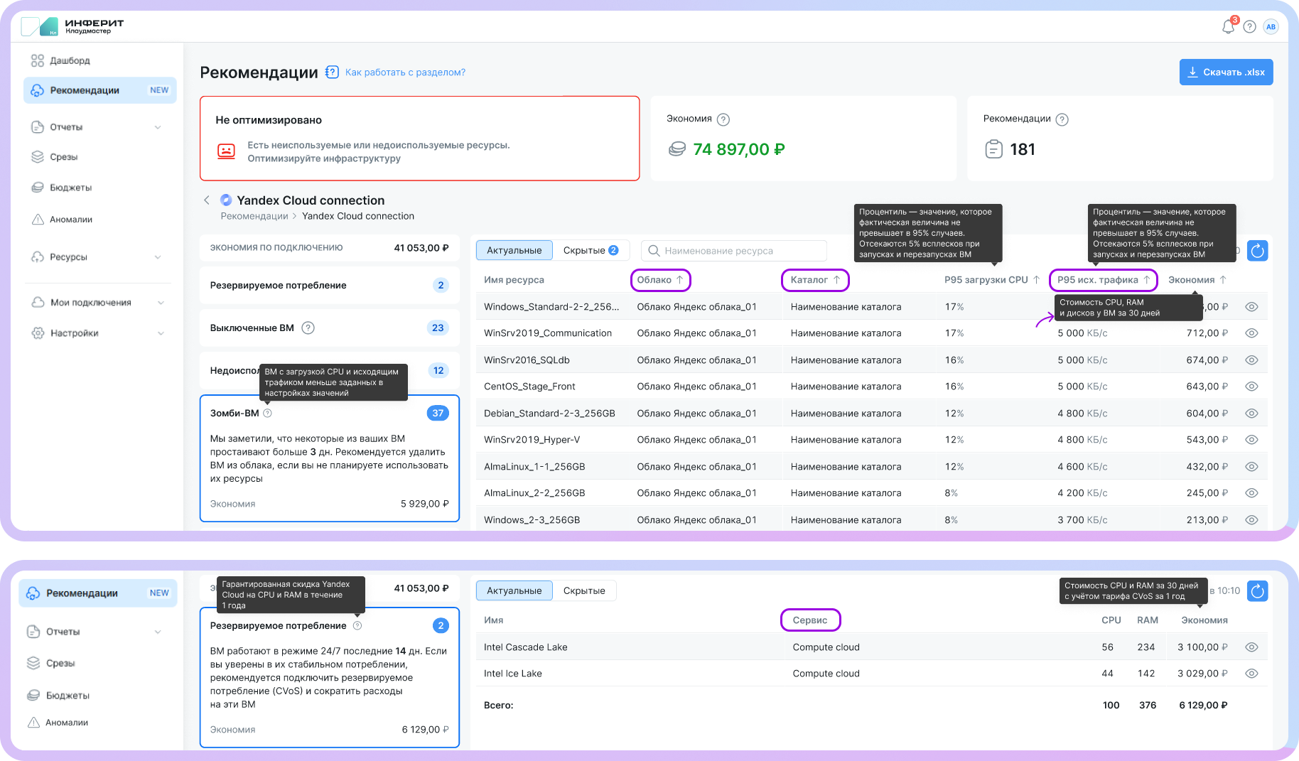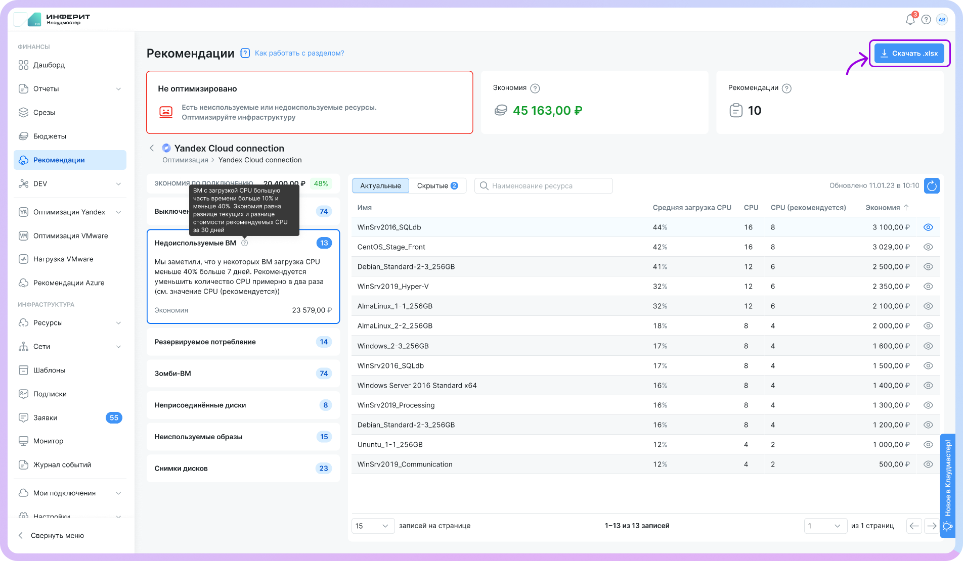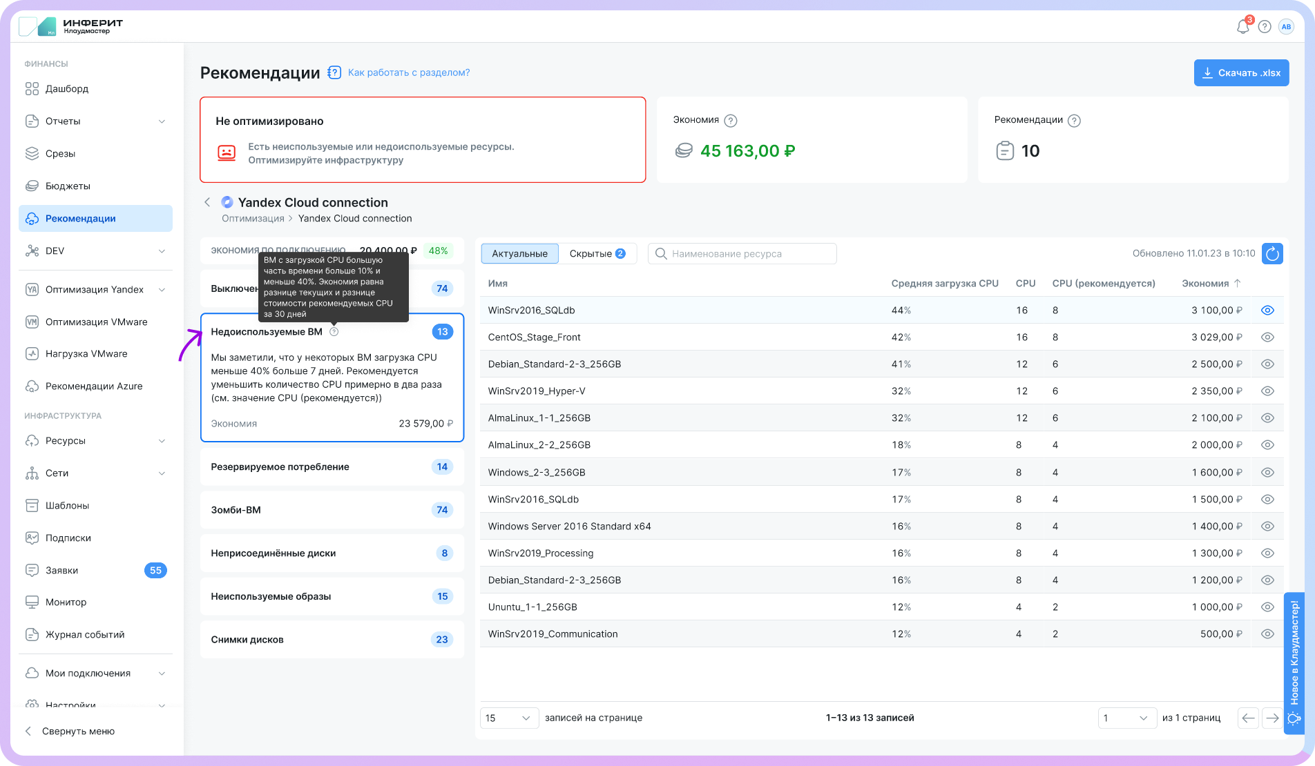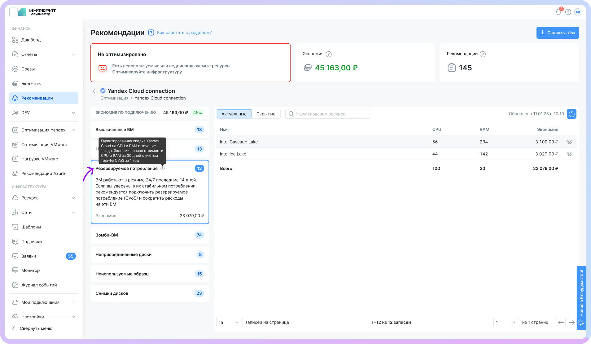 Cloud.ru Advanced: Рекомендации в абсолютных значениях для недоиспользуемых ВМ