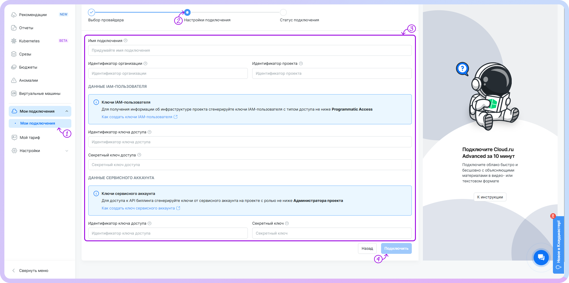 Добавили статью про создание подключения Cloud.ru Advanced.
