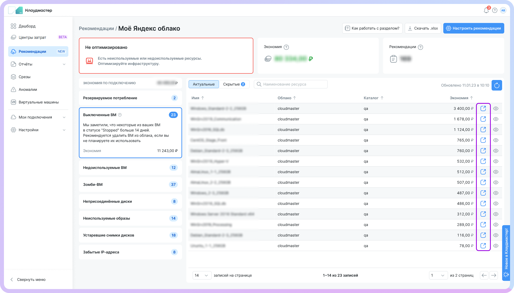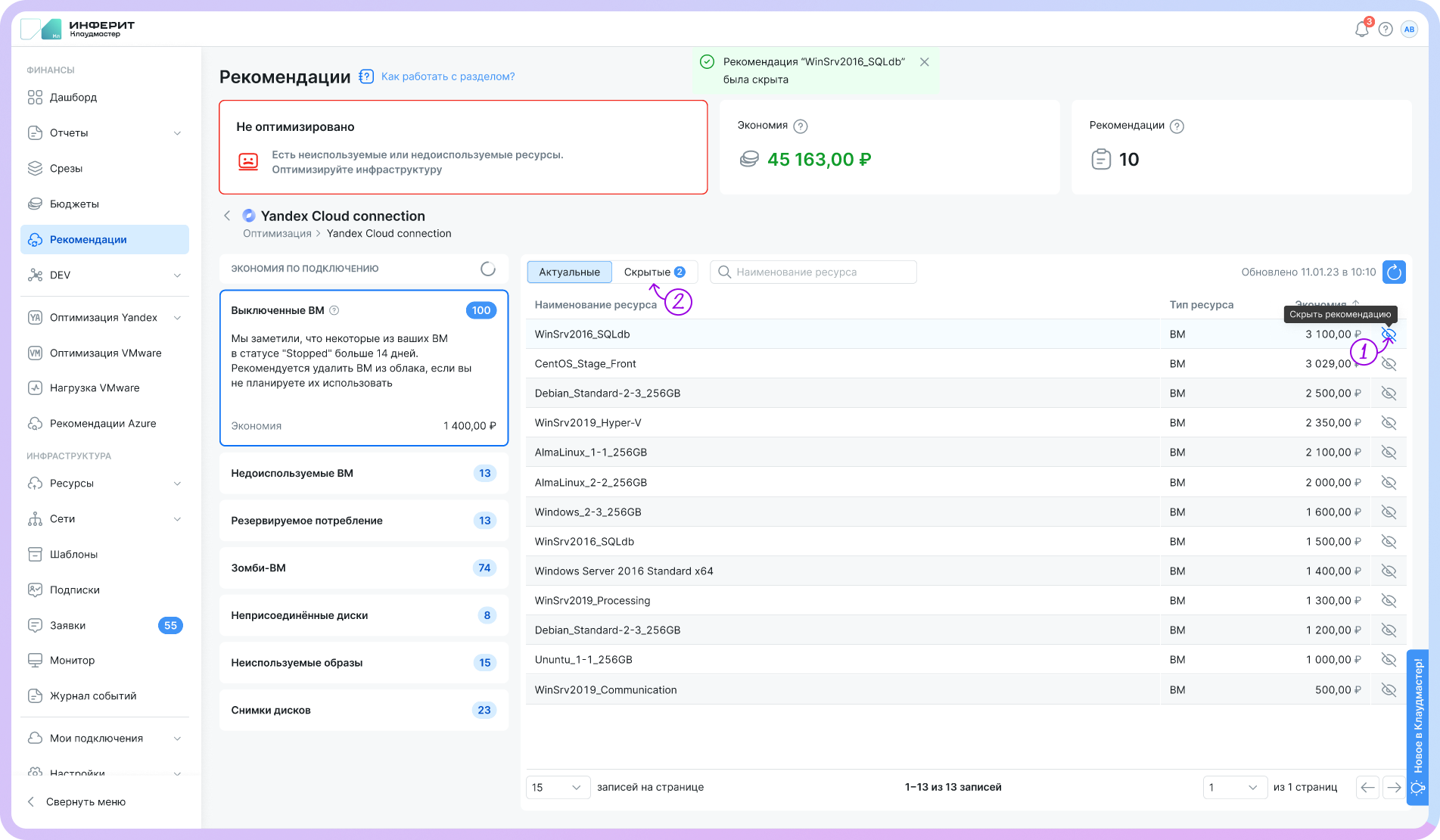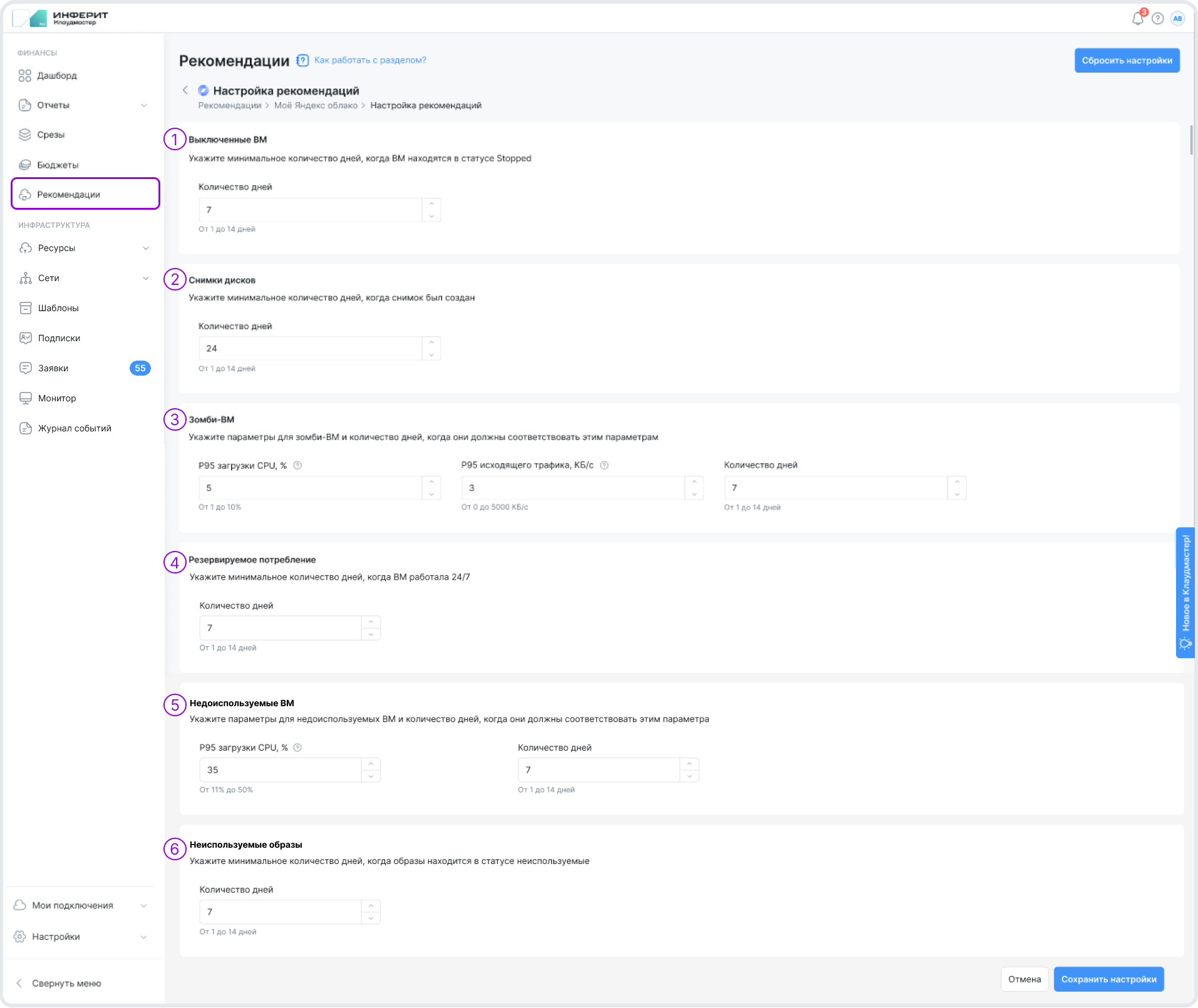 Cloud.ru Advanced: настройка рекомендаций для выключенных и недоиспользуемых ВМ