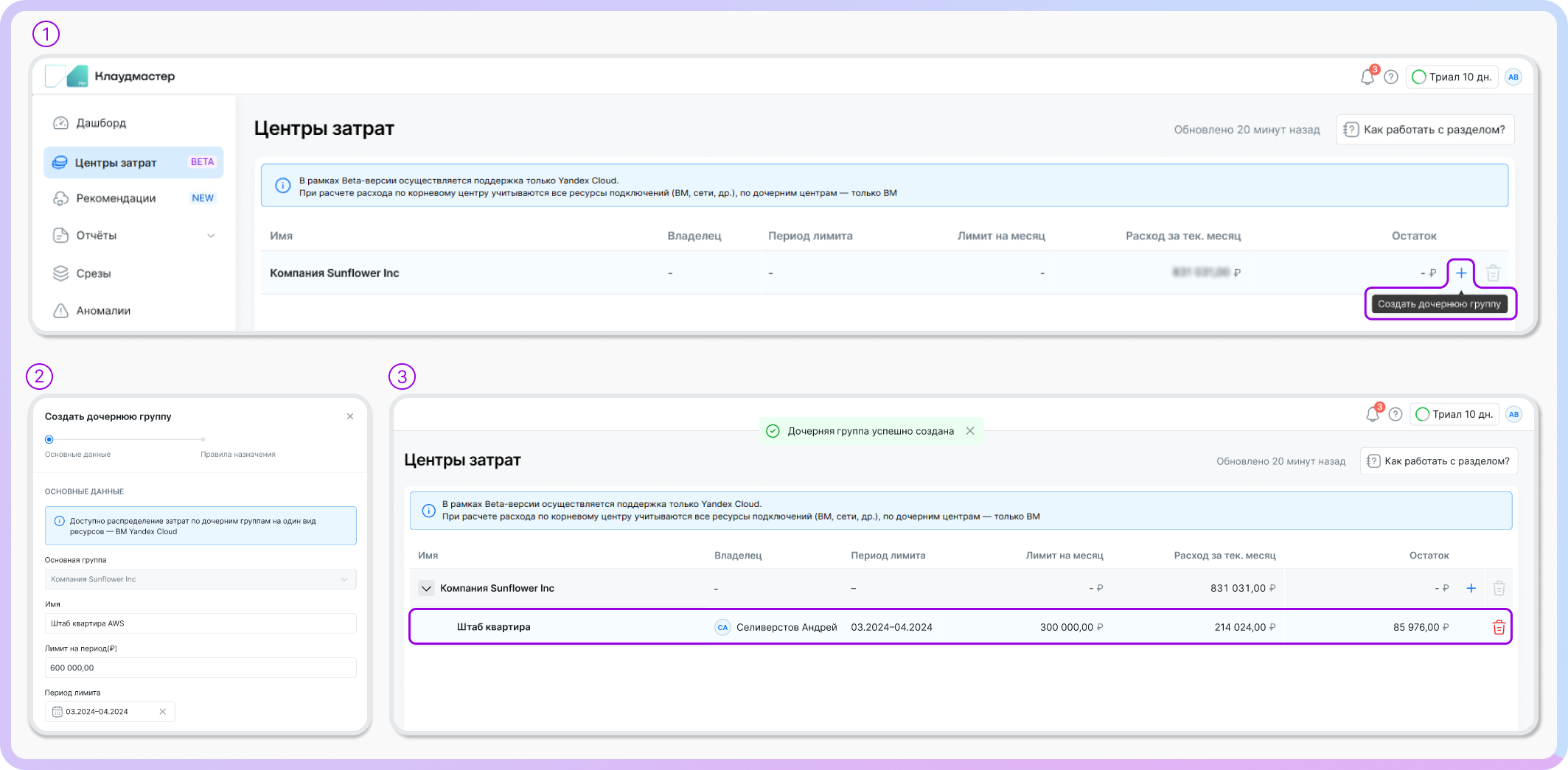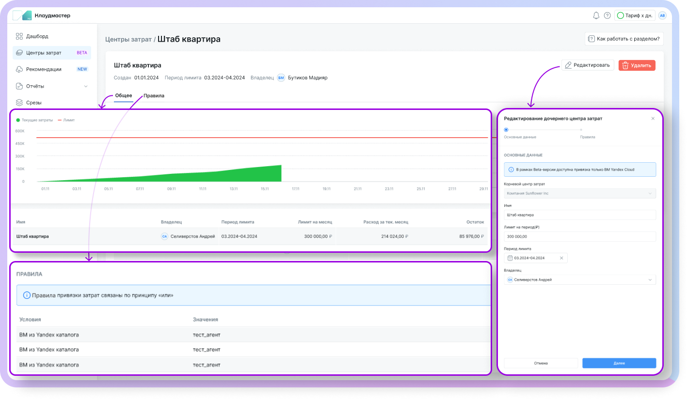 Улучшения в разделе Центры затрат↗ сделают назначение правил более прозрачным и удобным.