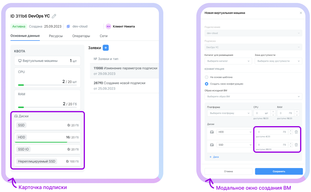Настроили управление ВМ вне Подписки. Глобальный администратор может создавать и управлять ВМ (изменять её параметры, получать доступ к консоли ВМ, создавать контрольные точки) вне Подписок и без согласования Заявок.