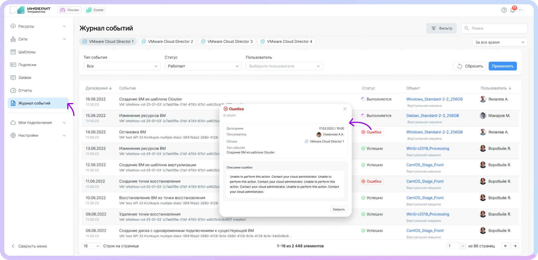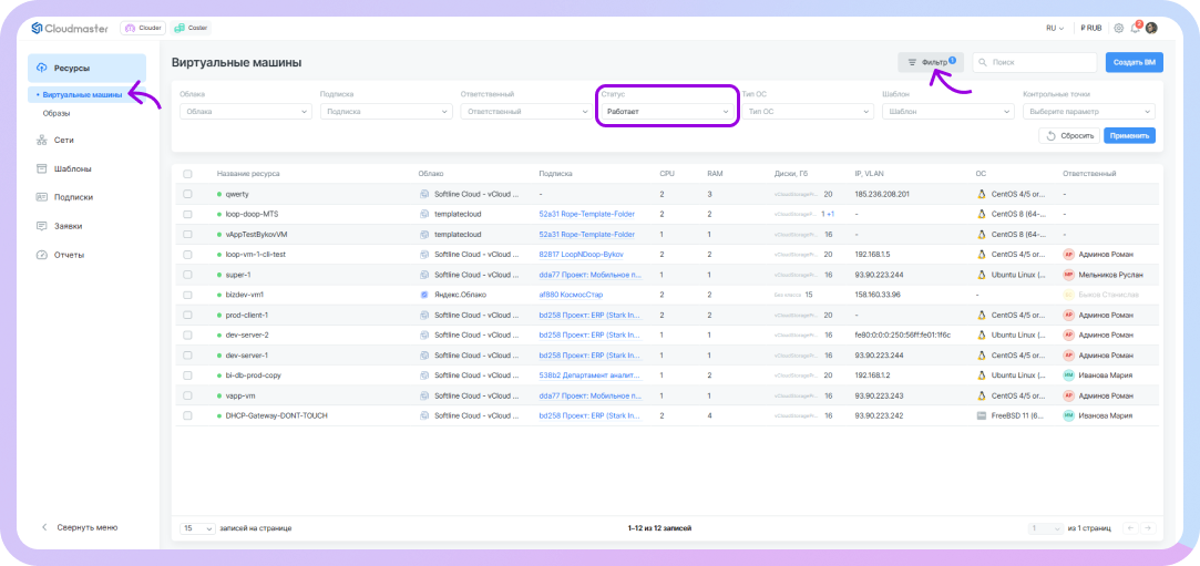 Сохранили фильтры при переходе между страницами. Если на одной странице Cloudmaster задать фильтрацию данных, при переходе на другую страницу и затем возвращении выбор фильтров сохраняется.