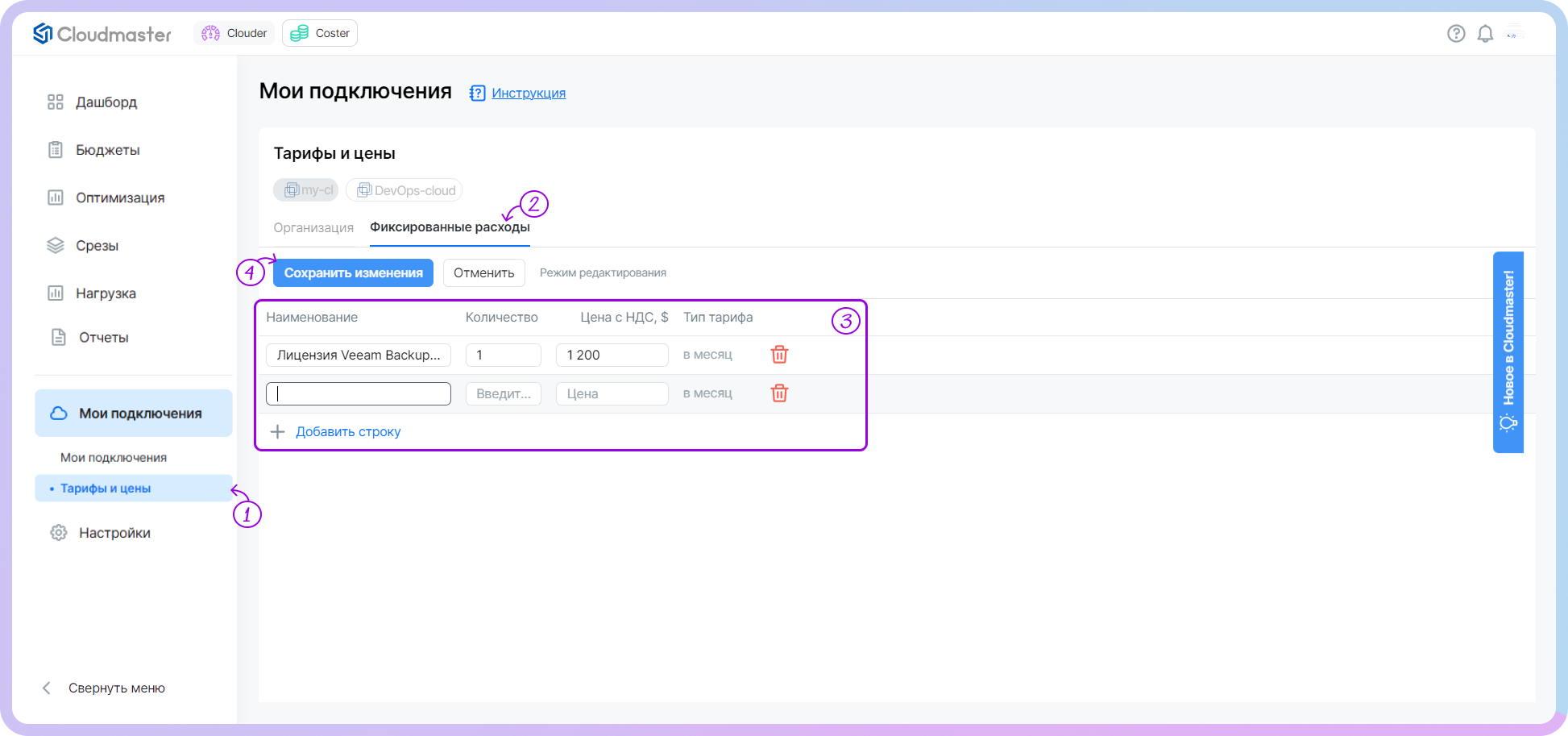 📌 Логика применима к обоим подходам заведения фиксированных расходов: 1) как отдельное подключение (реализовано ранее) и 2) в составе подключения VMware Cloud Director.