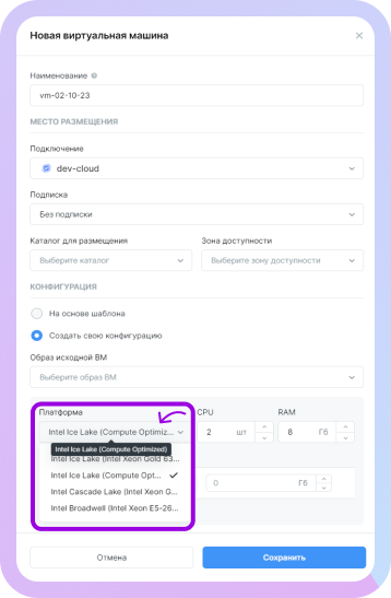 В форме создания ВМ VMware Cloud Director добавили селект (галочку) внизу выпадающего меню vApp для удобства добавления нового vApp вручную.