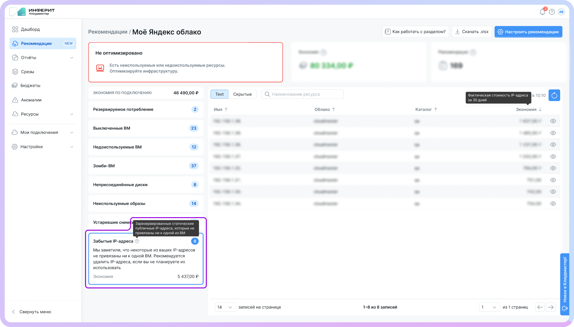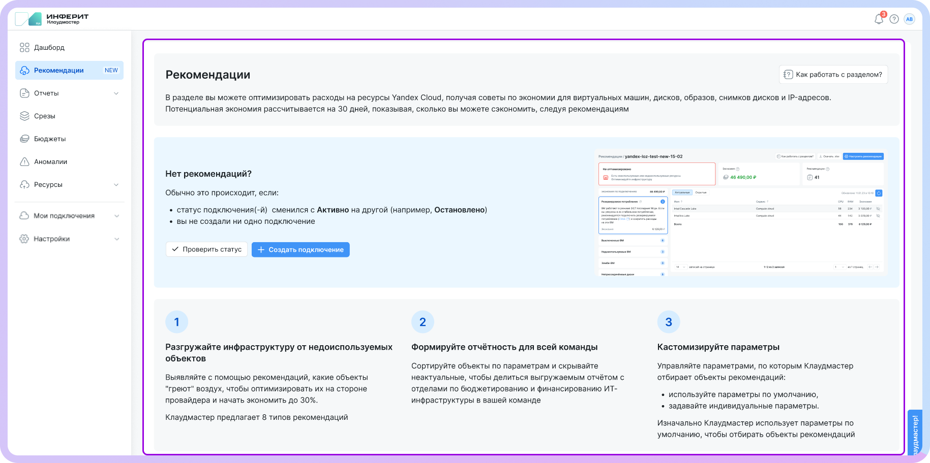 Cloud.ru Advanced: скрытие неактуальных рекомендаций