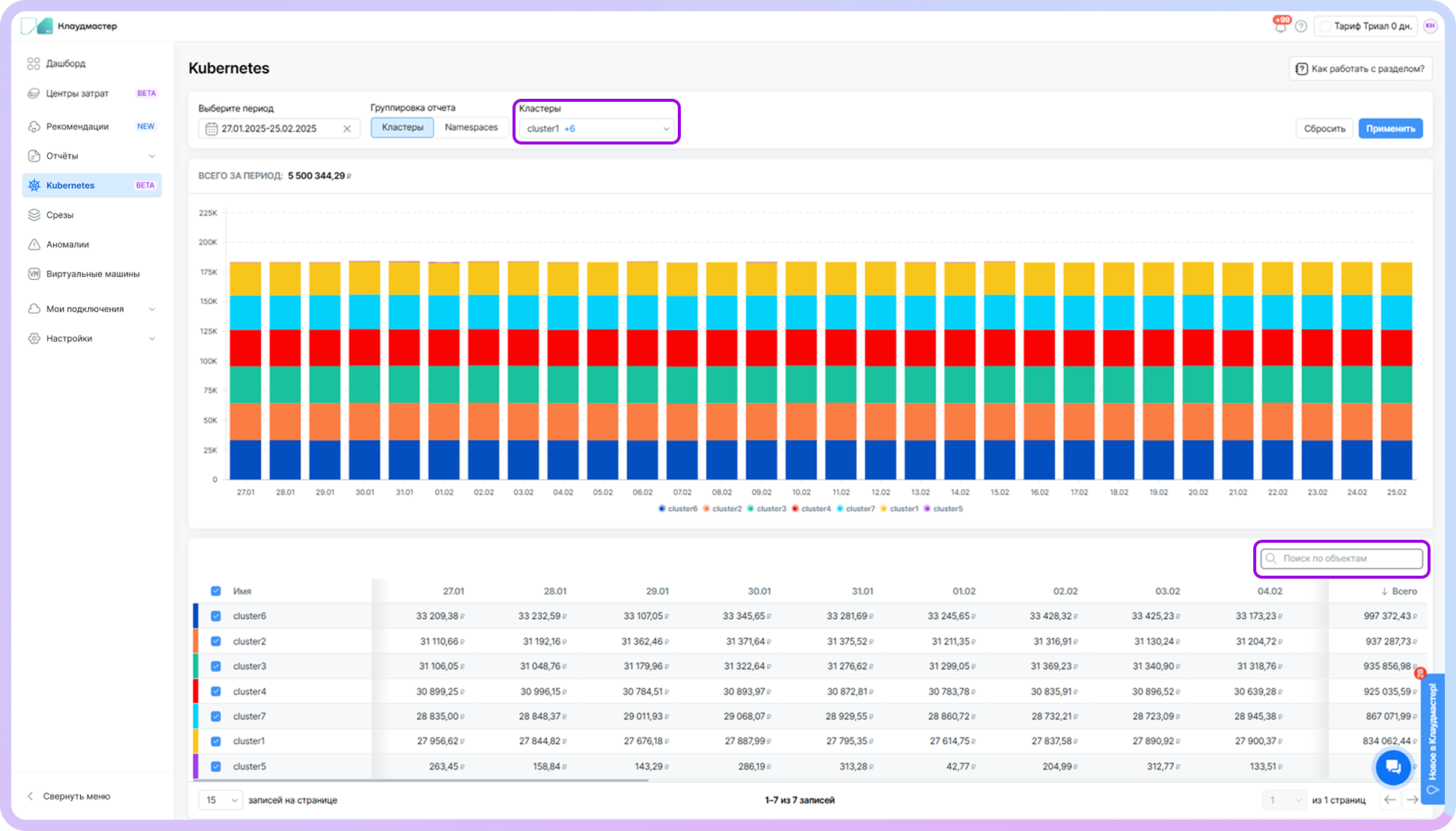 Kubernetes: разработали отчеты Kubernetes с группировкой по кластерам и namespac’ам.