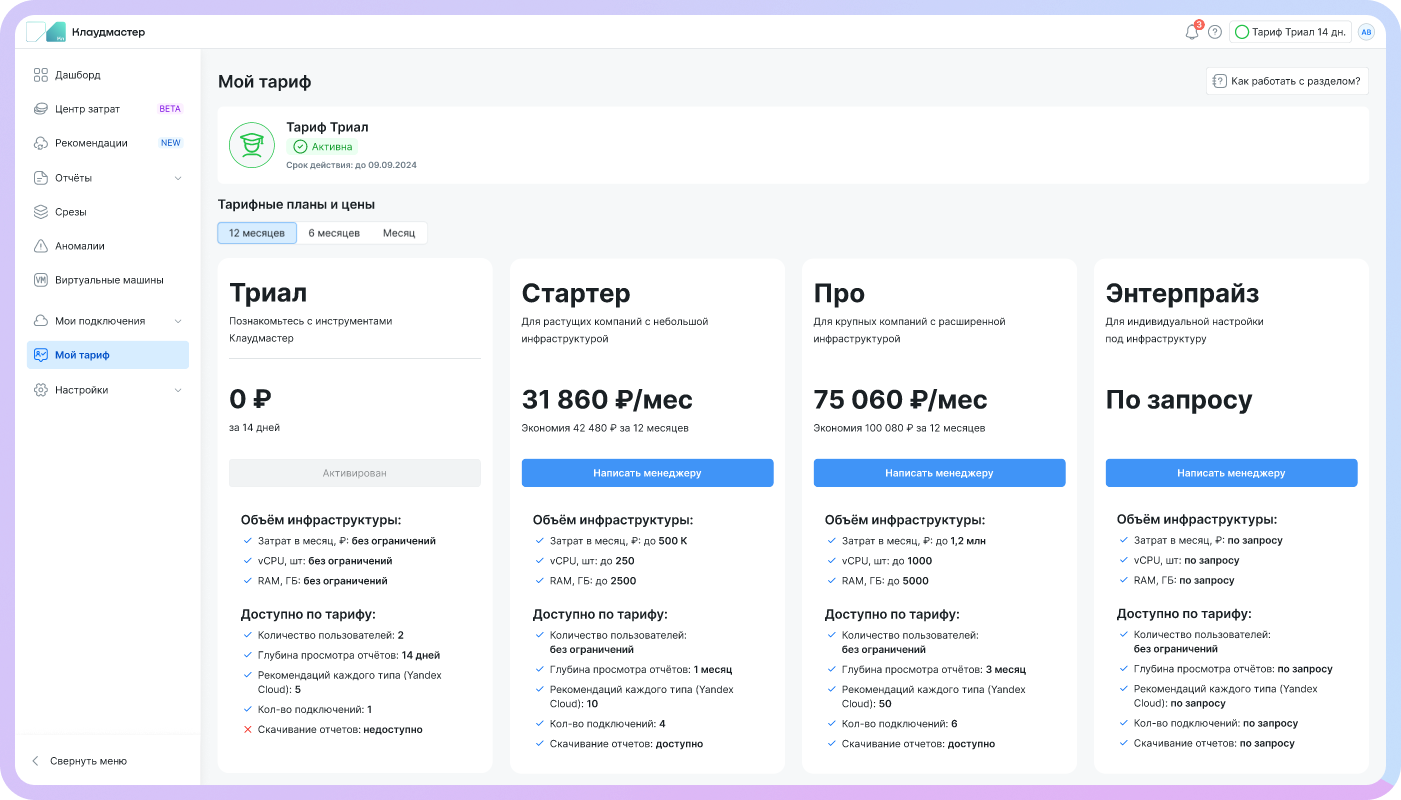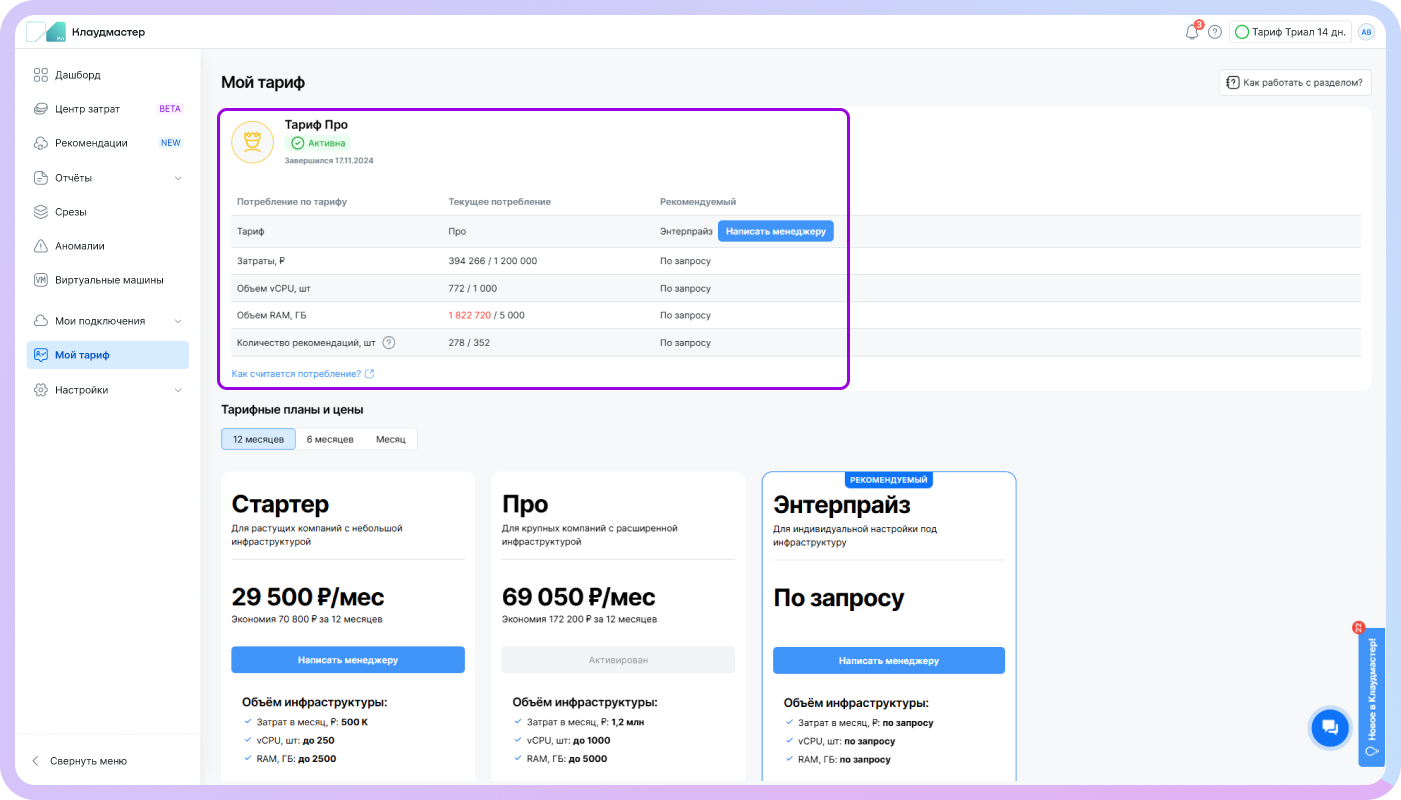 Обновили статью про тарифы Cloudmaster и расчёт текущего потребления в вашем аккаунте.
