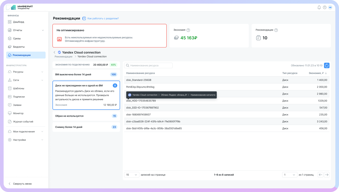 Kubernetes: добавили учёт хранилищ (системных дисков и PV) в затратах по Kubernetes.