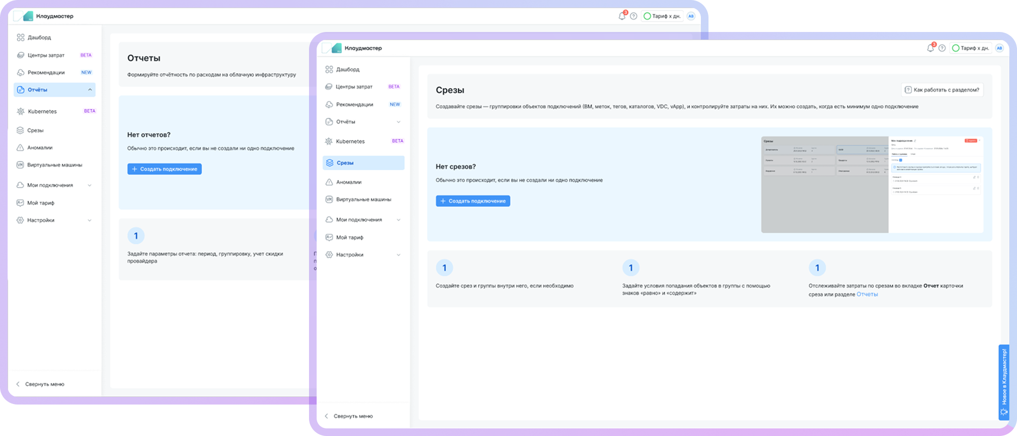 Отчёты, Срезы: добавили посадочные страницы в разделы Отчёты↗️ и Срезы↗️ с объяснением: