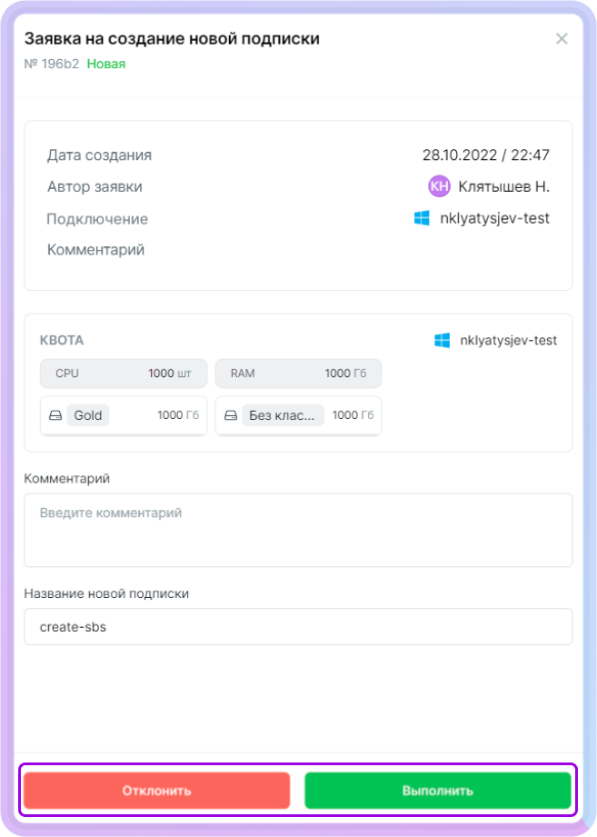 В Заявке с типом Передача ресурсов из Подписки в Подписку "Подписка (откуда)" → "Исходная подписка"; "Подписка (куда)" → "Целевая подписка".