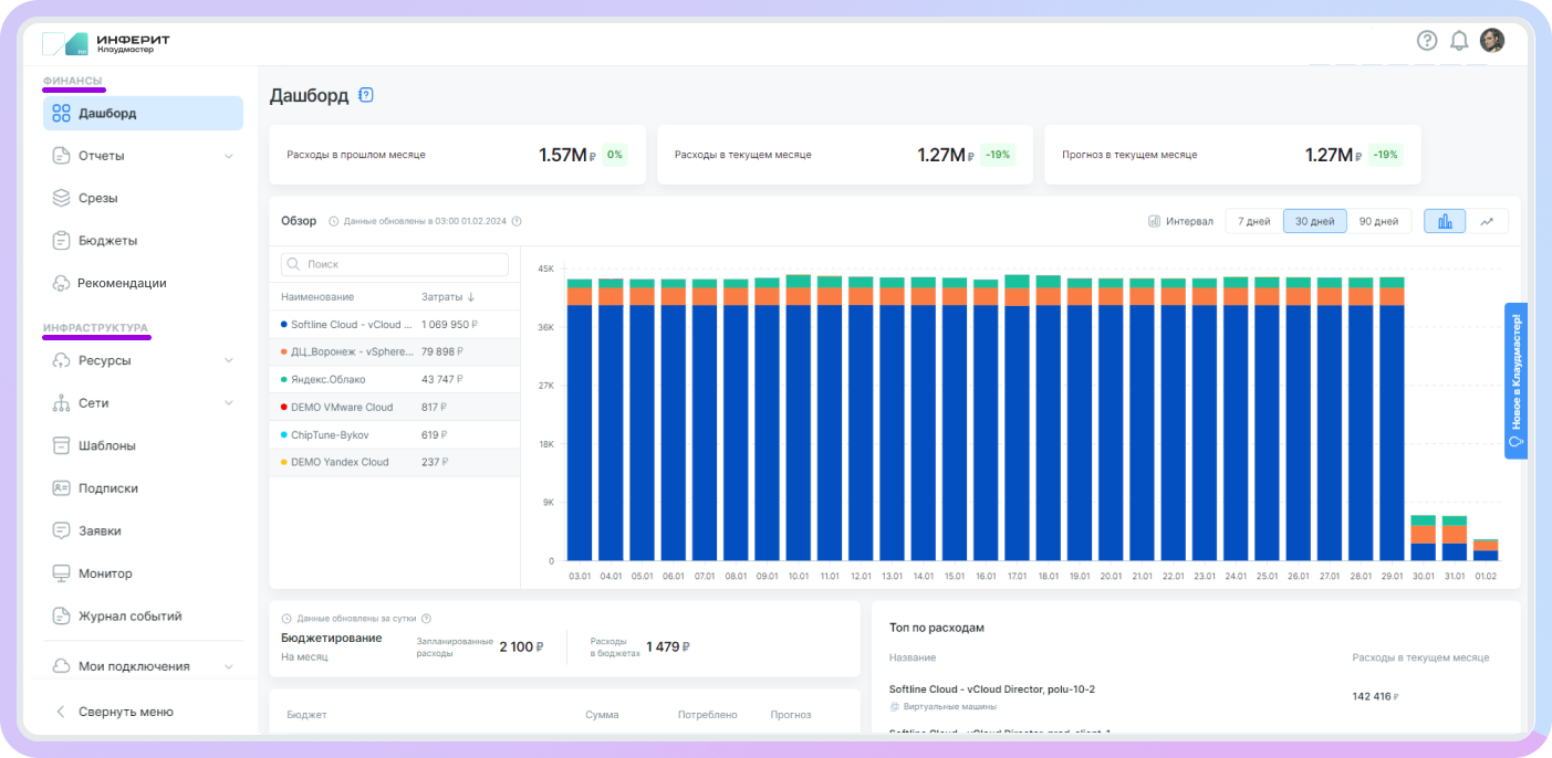 Пользователи смогут управлять затратами Cloud.ru Advanced с использованием FinOps-инструментов.
