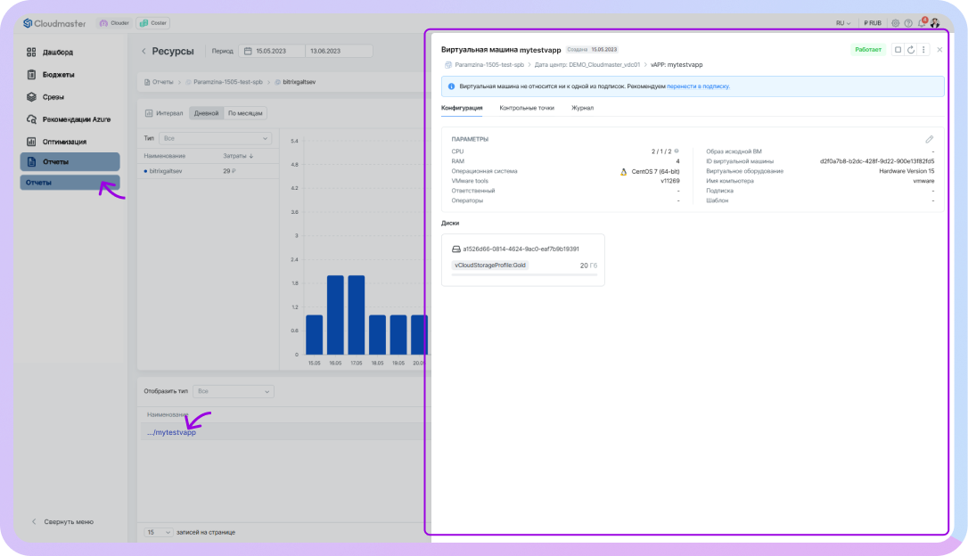Отчёты: добавили группировку по ВМ для подключений Cloud.ru Advanced.